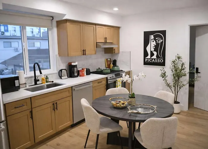 Das Apartment Luxe Ensuite In Shared Home-Minutes To Usc verfügt auch über eine voll ausgestattete Küchenzeile, die mit einem Toaster und einem Geschirrspüler ausgestattet ist. Die Bushaltestelle Exposition & Catalina liegt in unmittelbarer Nähe von dieser Unterkunft.